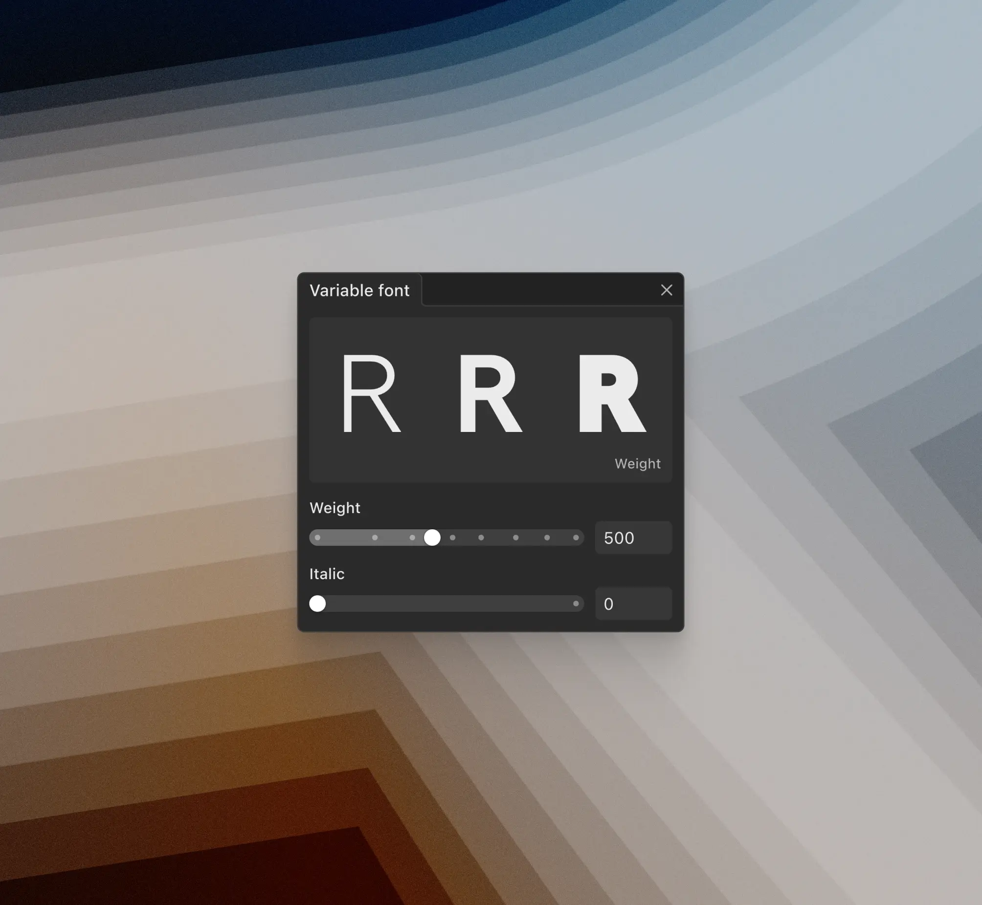 - Variable axes marked hidden in the font are no longer displayed in the editor